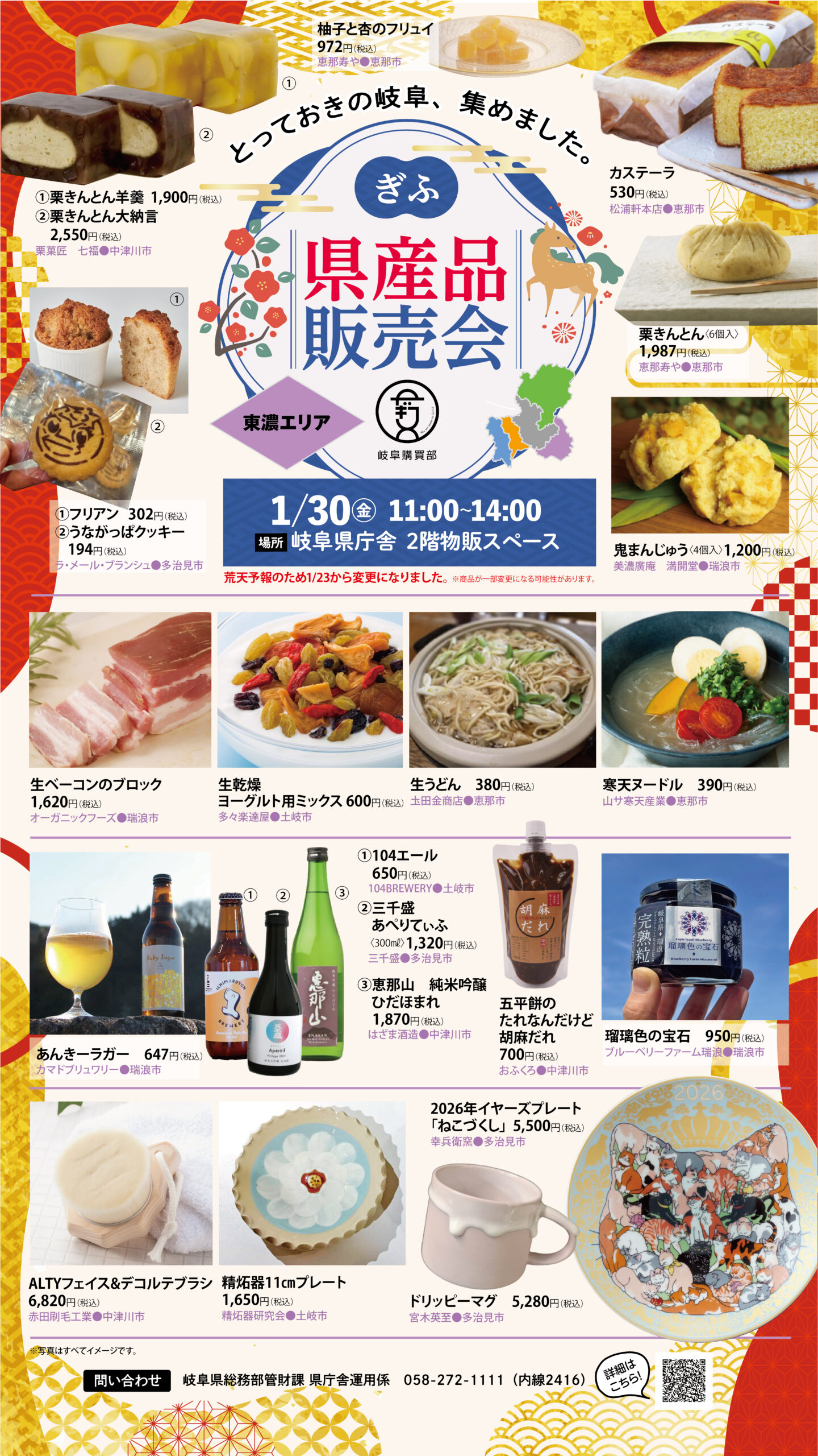 岐阜県産品の販売会を開催いたします。